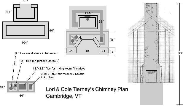 The chimney base in the cellar will be 8' x 4' x 8'6" tall and will have an 8" flue on either side. One for wood/oil furnace and the other is for a wood stove.